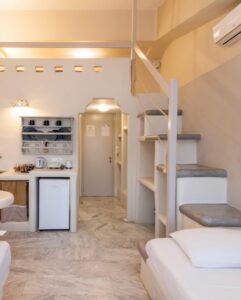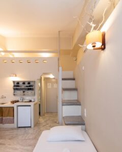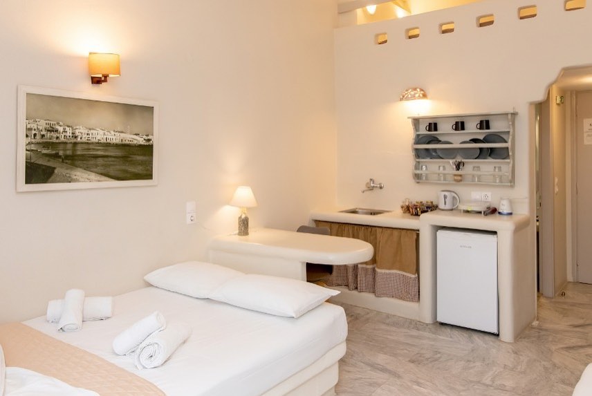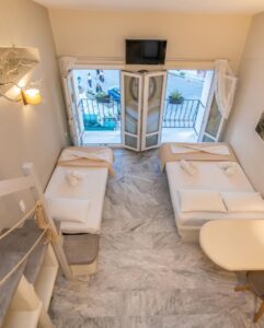 Eίναι ένα από τα πιο ρωμαντικά δωμάτια, ιδανικό για ζευγάρια που θέλουν μια πραγματικά ρομαντική φωλιά για τις πρώτες μέρες της καινούργιας τους ζωής. Αποτελεί μια εξαιρετική, οικονομική λύση για όσους επιθυμούν να μη χάσουν καμία από τις σύγχρονες ανέσεις της υψηλής φιλοξενίας μας. Στα 20 τ.μ. του βρίσκουμε ένα κτιστό υπέρδιπλο και ένα μονό κρεβάτι, κτιστό μπάνιο με ντουζιέρα και ένα μικρό μπαλκονάκι με υπέροχη θέα στην θάλασσα. Οι διακοσμητικές λεπτομέρειες συμπληρώνουν τον άνετο χώρο του και γίνονται ένα υπέροχο δωμάτιο για τις διακοπές σας στη Τήνο. Το Angelo room sea view βρίσκεται στον πρώτο όροφο.