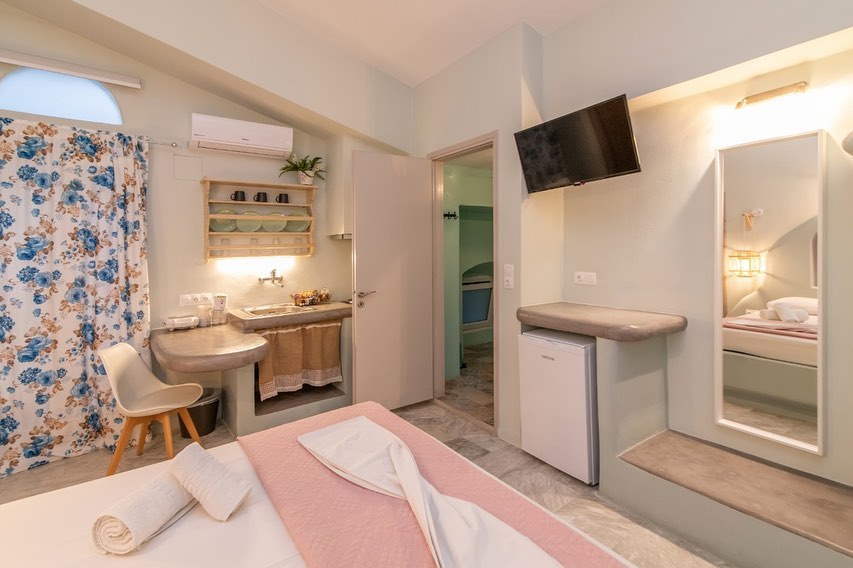 Eίναι ένα από τα πιο ρωμαντικά δωμάτια, ιδανικό για ζευγάρια που θέλουν μια πραγματικά ρομαντική φωλιά για τις πρώτες μέρες της καινούργιας τους ζωής. Αποτελεί μια εξαιρετική, οικονομική λύση για όσους επιθυμούν να μη χάσουν καμία από τις σύγχρονες ανέσεις της υψηλής φιλοξενίας μας. Στα 20 τ.μ. του βρίσκουμε ένα κτιστό υπέρδιπλο και ένα μονό κρεβάτι, κτιστό μπάνιο με ντουζιέρα και ένα μικρό μπαλκονάκι με υπέροχη θέα στην θάλασσα. Οι διακοσμητικές λεπτομέρειες συμπληρώνουν τον άνετο χώρο του και γίνονται ένα υπέροχο δωμάτιο για τις διακοπές σας στη Τήνο. Το Angelo room sea view βρίσκεται στον πρώτο όροφο.