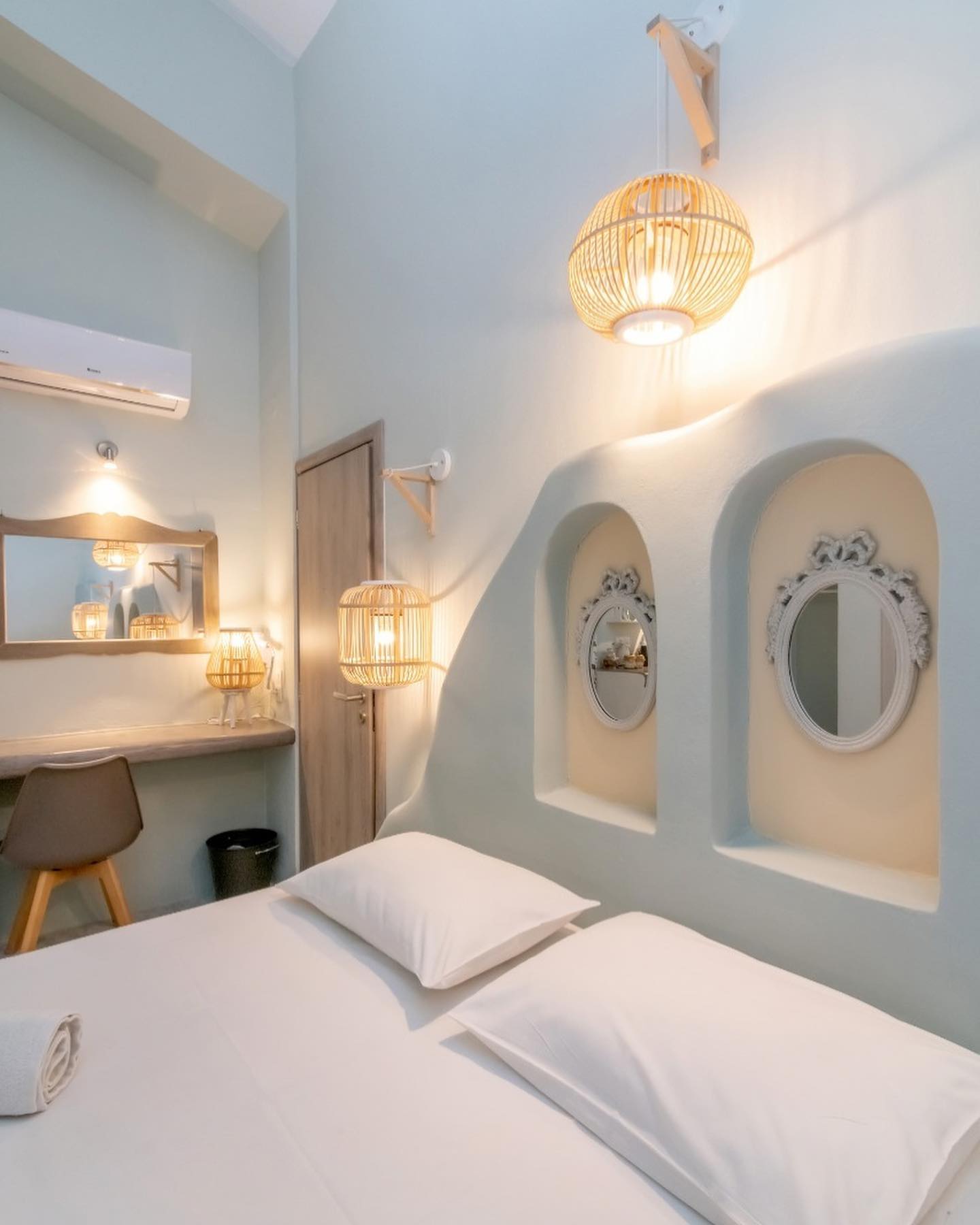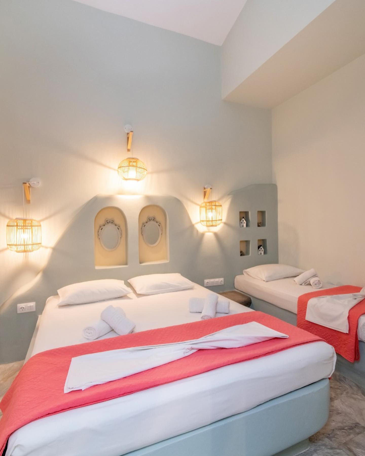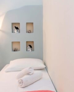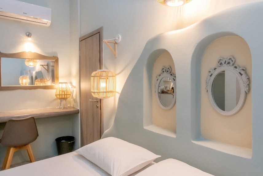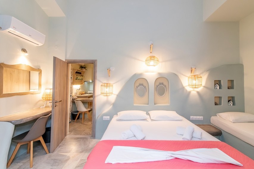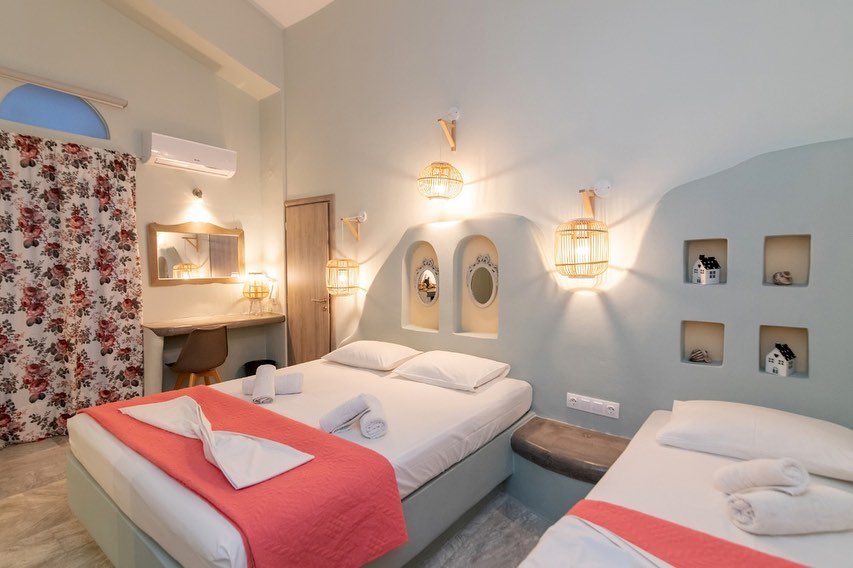 Eίναι ένα από τα πιο ρωμαντικά δωμάτια, ιδανικό για ζευγάρια που θέλουν μια πραγματικά ρομαντική φωλιά για τις πρώτες μέρες της καινούργιας τους ζωής. Αποτελεί μια εξαιρετική, οικονομική λύση για όσους επιθυμούν να μη χάσουν καμία από τις σύγχρονες ανέσεις της υψηλής φιλοξενίας μας. Στα 20 τ.μ. του βρίσκουμε ένα κτιστό υπέρδιπλο και ένα μονό κρεβάτι, κτιστό μπάνιο με ντουζιέρα και ένα μικρό μπαλκονάκι με υπέροχη θέα στην θάλασσα. Οι διακοσμητικές λεπτομέρειες συμπληρώνουν τον άνετο χώρο του και γίνονται ένα υπέροχο δωμάτιο για τις διακοπές σας στη Τήνο. Το Angelo room sea view βρίσκεται στον πρώτο όροφο.